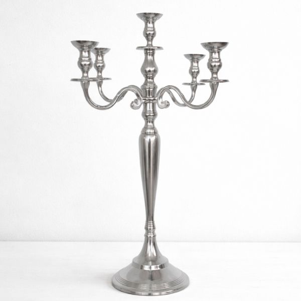Elevate your wedding or event tablescape with our Silver Five-Arm Candelabra, a timeless centrepiece that adds instant elegance and romantic candlelit ambience. Featuring a polished silver finish and classic curved arms, this candelabra is perfect for weddings, styled shoots, gala dinners, and luxury celebrations.