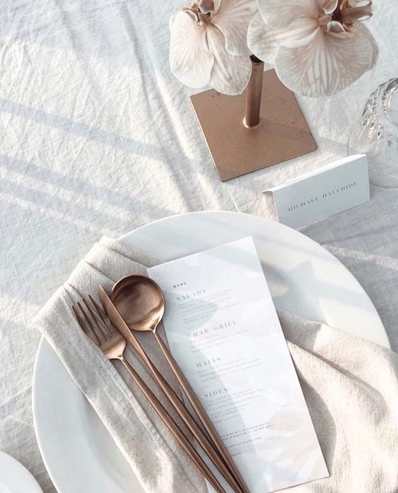 Art Deco Rose gold Cutlery hire excludes table decor, flowers, or any additional decor items