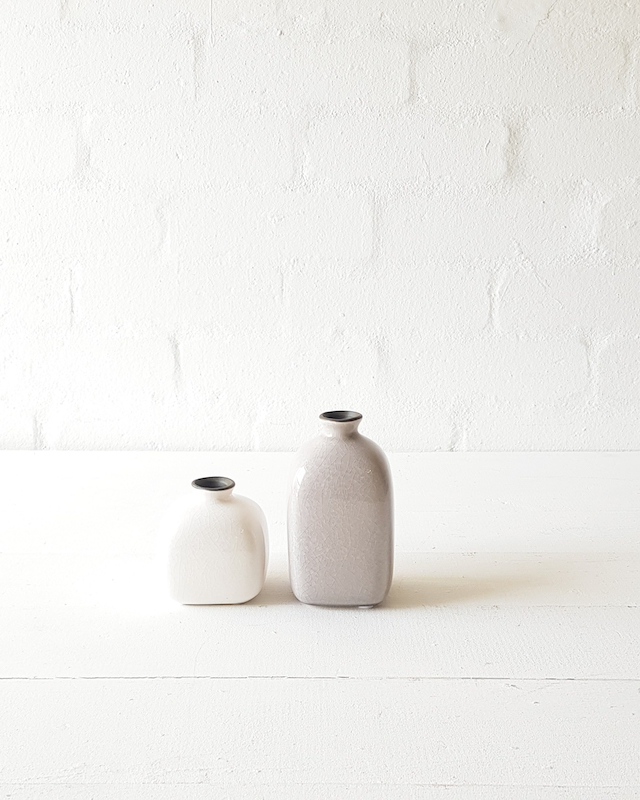 Ceramic Glazed Grey Posy Budvase hire excludes candles, flowers, or any additional decor items
