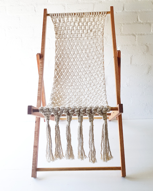 Macrame deck chair hire excludes delivery, scatter pillows, or any additional decor items