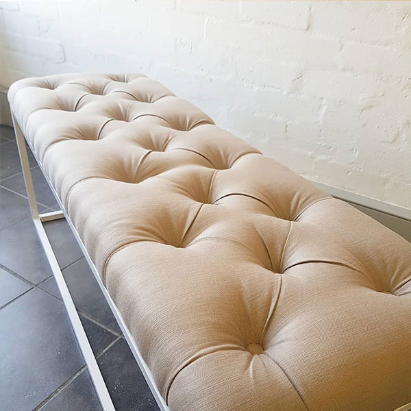 Modern Industrial Ottoman Bench hire excludes delivery, scatter pillows, or any additional decor items